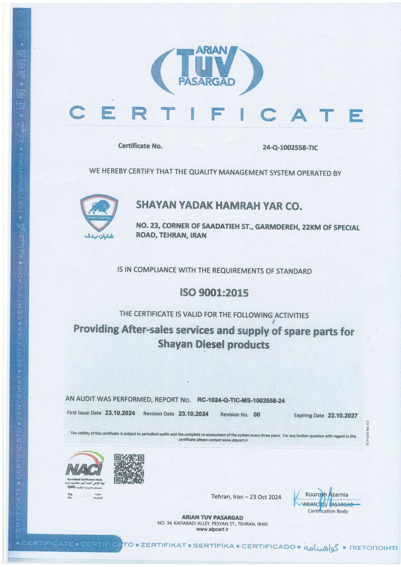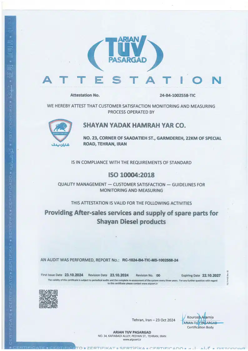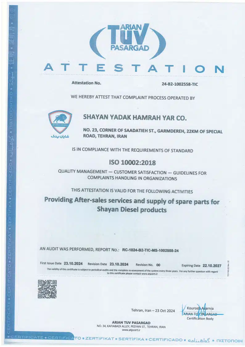 گواهینامهها و استانداردها شرکت شایان یدک صفحه نخست / درباره شرکت / گواهینامهها و استانداردها تندیس واحد نمونه گواهینامه سیستم رسیدگی به شکایات مشتریان گواهینامه سیستم رضایت مندی مشتریان گواهینامه سیستم مدیریت کیفیت گواهینامه ها گواهینامه سیستم رسیدگی به شکایات مشتریان گواهینامه سیستم رضایت مندی مشتریان گواهینامه سیستم مدیریت کیفیت